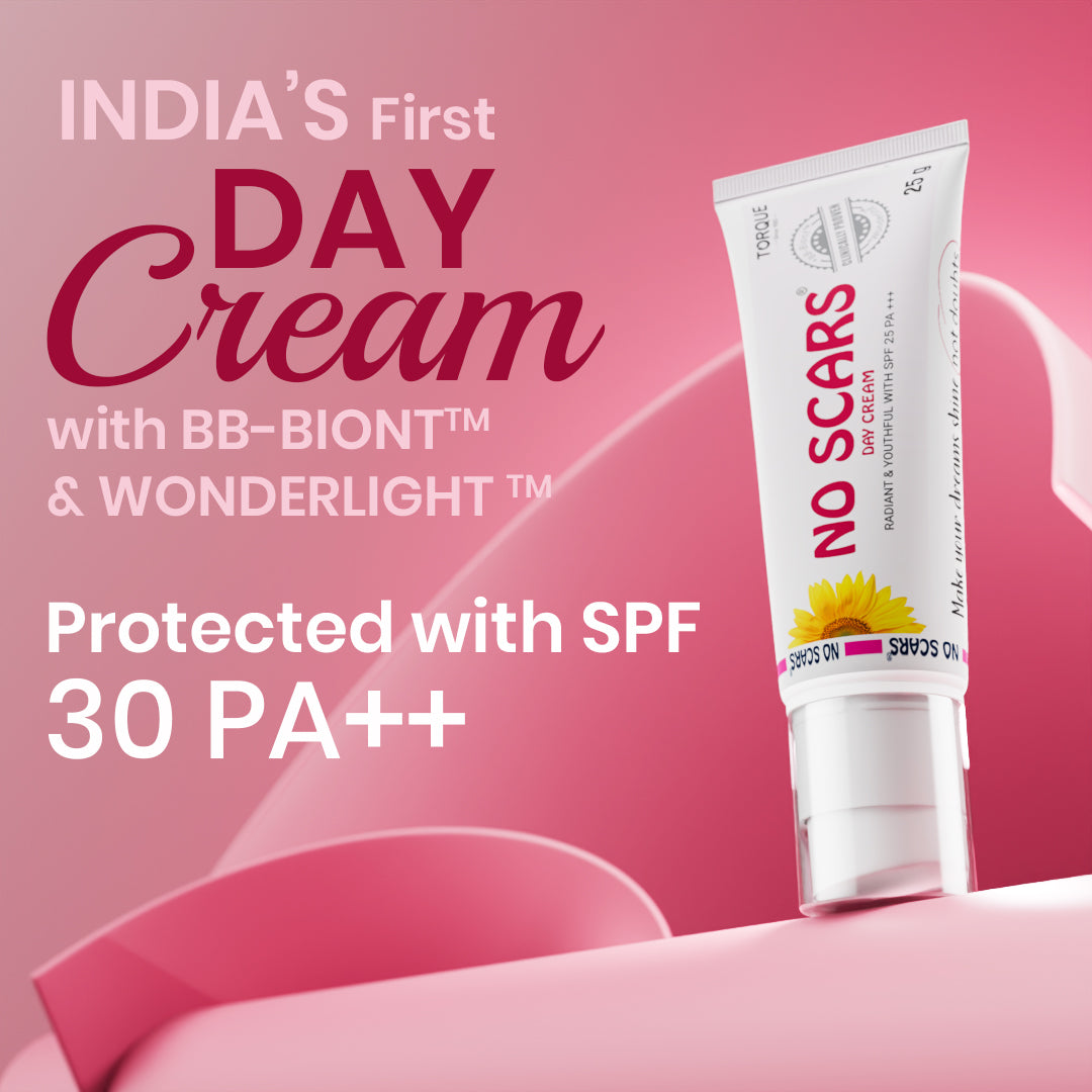 No Scars Day Cream with SPF 30 PA++ Skin Brightening Cream with BB-BIONT™ & Wonderlight™, 25g