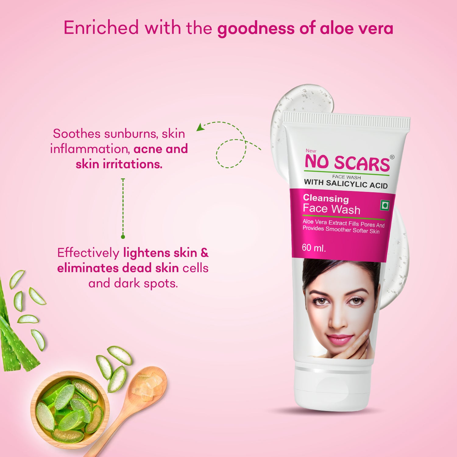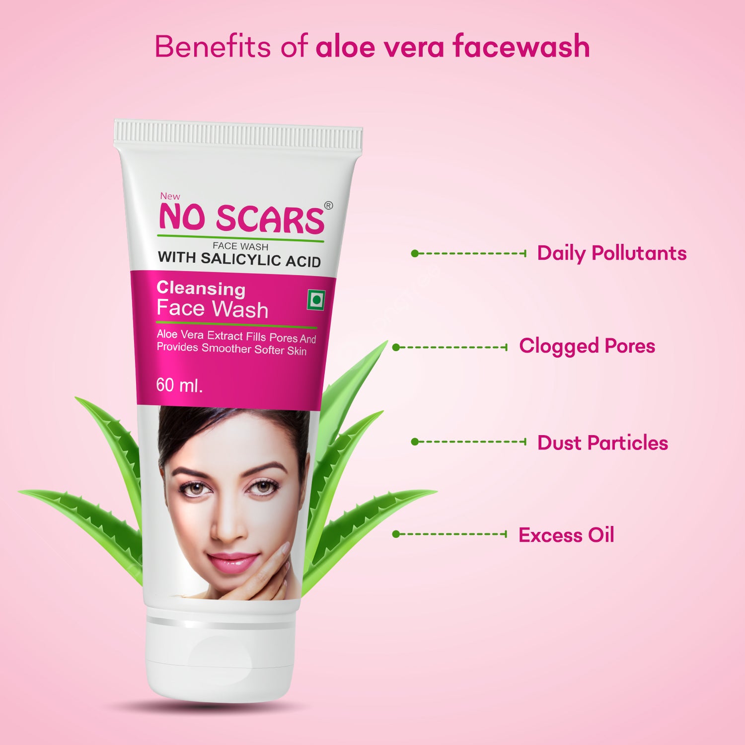 NO SCARS Aloevera Face Wash For Deep Cleansing | Clear Skin, Reduce Acne, Scars For Acne Prone Skin - Men & Women 60Ml